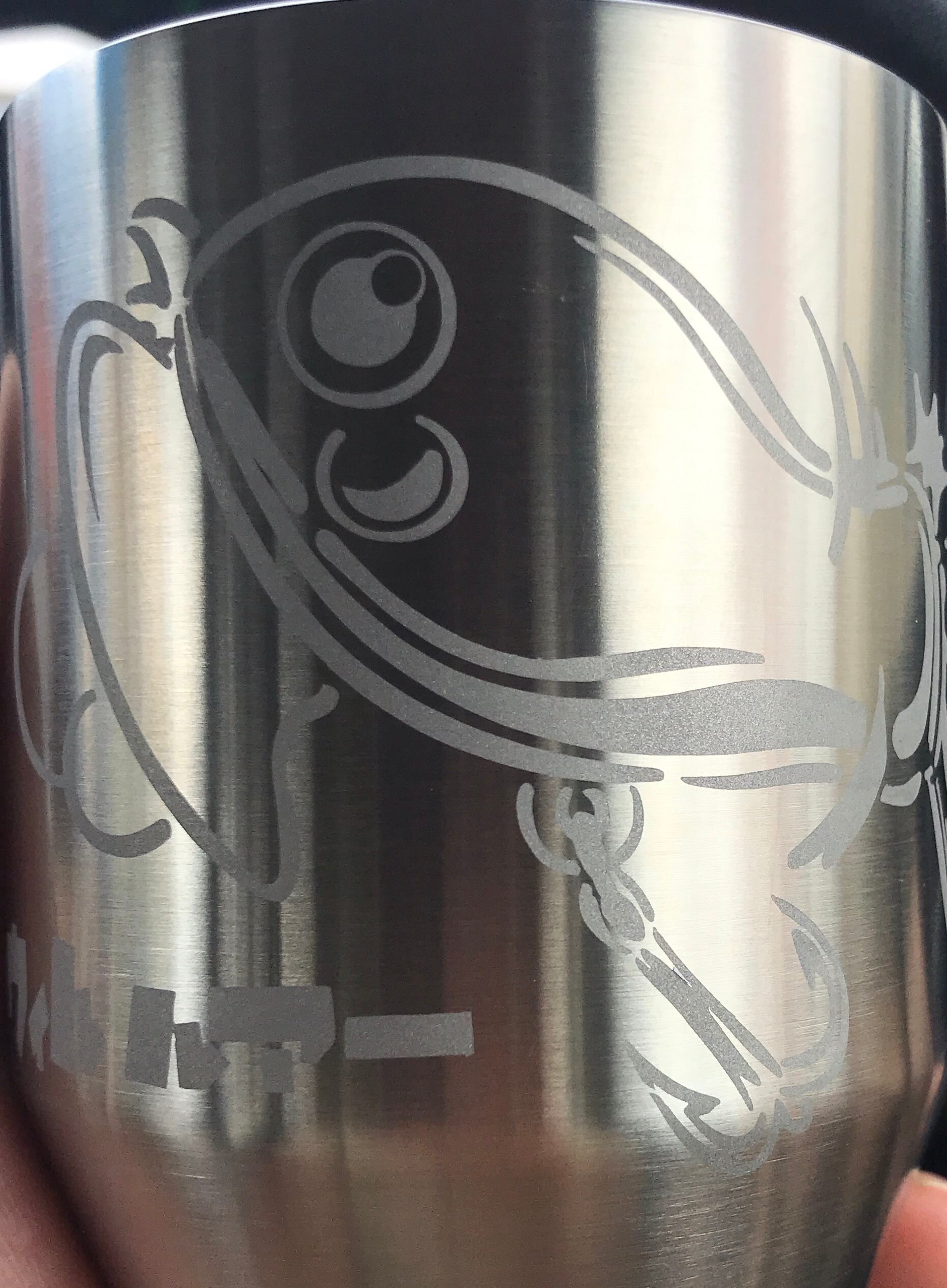 プーファーとロゴマークがサンドブラスト処理でエッヂングしてある